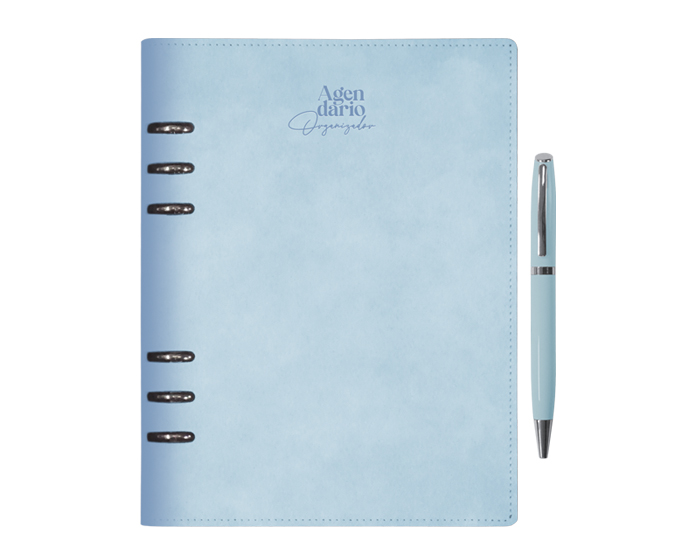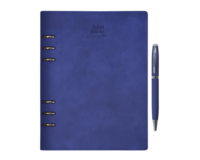 Descripción: Carpeta tipo agendario organizador de pasta rígida de 6 arillos de metal, su cubierta cuenta en la parte interna con 4 compartimentos para credenciales, uno con ventana plástica, sujetador para bolígrafo. Contiene 96 hojas en total (192 pág.): Hoja de dedicatoria, hoja de datos de contacto, calendarios del 2025 al 2028, planificadores anuales (4), planificadores de gastos (4), planificadores de proyectos (5), hojas rayadas y hojas punteadas para notas. Incluye: regla de 20 cm, bolsa de PVC con cierre a presión y bolígrafo de aluminio acabado brillante con detalles en cromo. Puedes adquirir el repuesto Parker en tinta azul para este bolígrafo. Presentación: Caja en color negro.