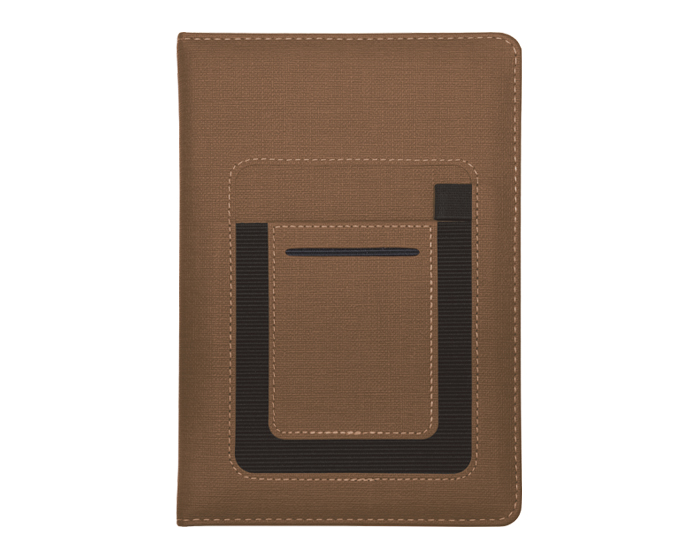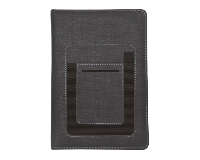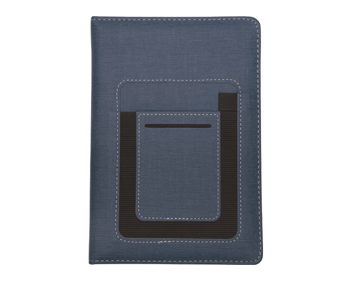 Descripción: Libreta personal tamaño A5, con 80 hojas (160 páginas) con cubierta de curpiel texturizada. Contiene 2 compartimentos uno para tarjetas y otro para celular o notas y banda elástica para bolígrafo.