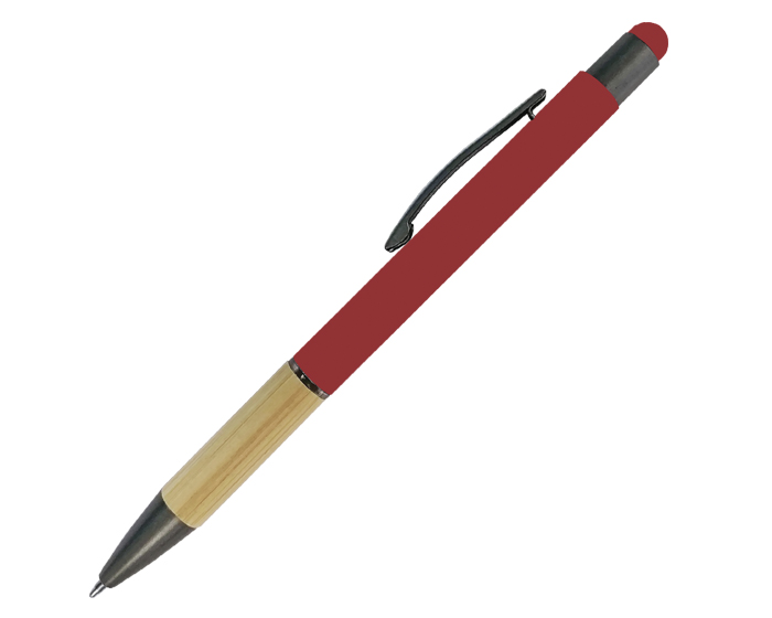 Descripción: Bolígrafo de aluminio con touch screen, grip de bambú, clip de metal, cuerpo con terminado tipo rubber. Mecanismo de click.