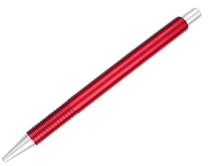 Bolígrafo de plástico en color metalizado. Mecanismo de click.
