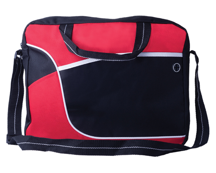 Descripción: Bolsa tipo maletín en poliéster, asas y correa ajustable. Cuenta con bolsillo externo y salida para audífonos, en 2 tonos de tela combinables.