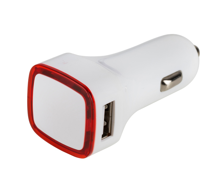 Descripción: Cargador para automóvil con 2 entradas USB. Fino detalle de color traslúcido en contorno. Voltaje 5.1V, 1A y 2.1A. Presentación: caja en color blanco.