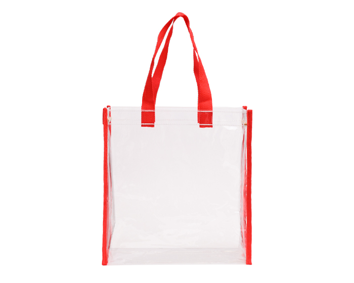 Descripción: Bolsa transparente de PVC con fuelle, bies lateral y asas de color.Medidas: 30 x 30 x 14 cmMaterial: Plástico PVC / PoliésterIMPORTANTE: Los precios incluyen IVA. No incluye costo por personalización.