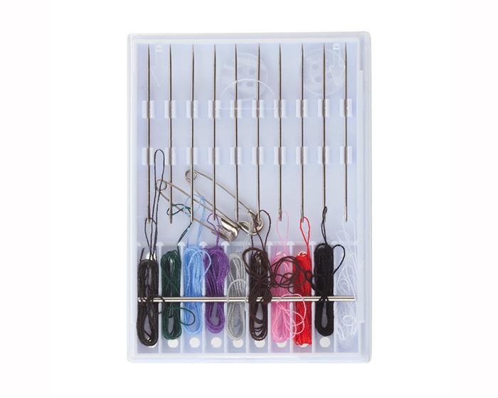 Descripción: Costurero portátil con tapa deslizable. Incluye: aguja, botones, seguros, variedad de hilos y alfileres.