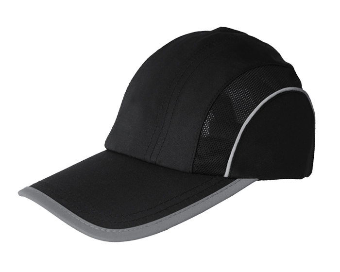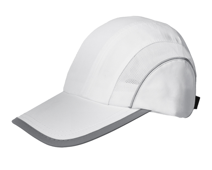 Gorra deportiva de 3 gajos, con malla transpirable y de secado rápido, con orilla de tela reflejante, cuenta con broche de plástico de seguridad y cinta de resorte ajustable.