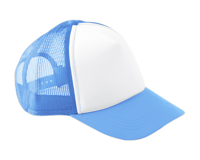 Descripción: Gorra en poliéster con visera de algodón. Con frente acolchado y 4 gajos en malla. Ajuste con broche de plástico.