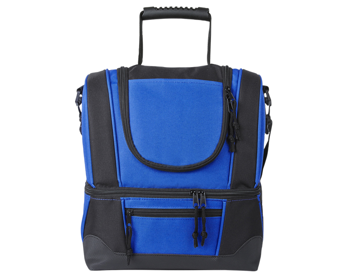 Descripción: Lonchera / Hielera térmica con cubierta cosida e interior termosellado en plástico anti escurrimiento con 2 compartimentos: parte superior para alimentos y parte inferior para bebidas. Estos compartimentos cuentan con una red de separación con cierre, correa ajustable, bolsa lateral de malla, asa para transportar, 2 espacios para guardar; uno con cierre en la parte frontal y otro con broche en la parte superior e identificador transparente en la parte trasera. CAP. 8 latas.