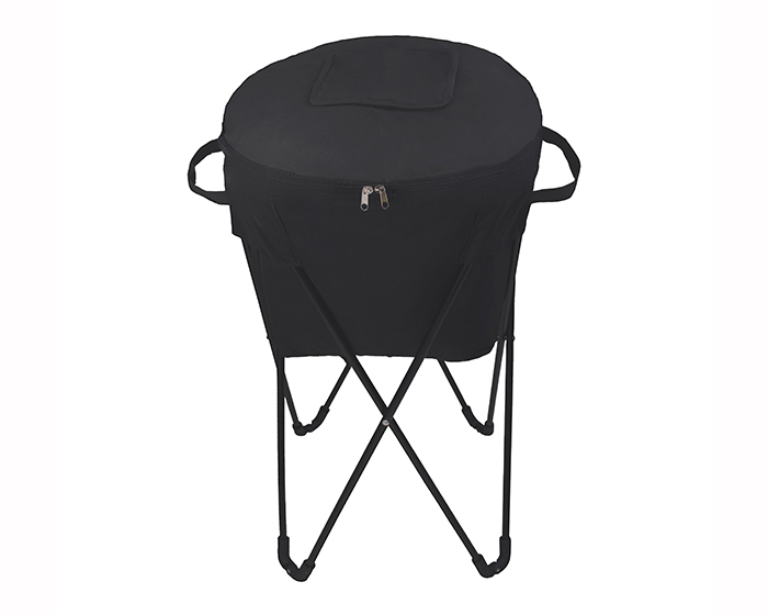 Descripción: Hielera con base de metal plegable, cubierta cosida e interior termosellado en plástico anti escurrimiento, cuenta con un compartimento de contacto desmontable para guardar, 2 cierres, asas laterales y pivote para extracción de líquidos. Incluye funda para guardar.