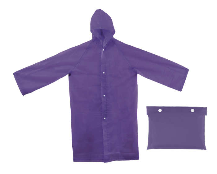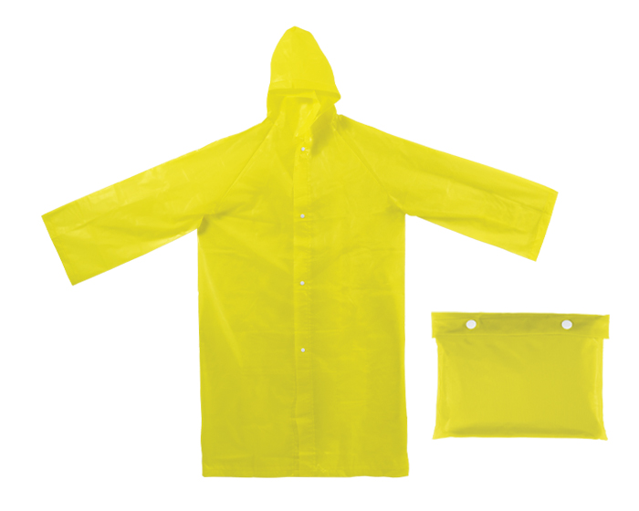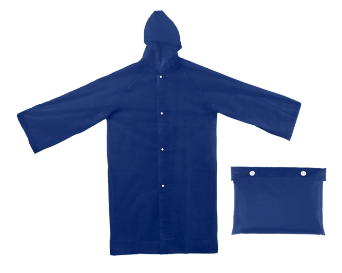 Descripción: Impermeable con botónes. Incluye funda portátil del mismo material con broche de botón. La impresión requiere tinta especial.