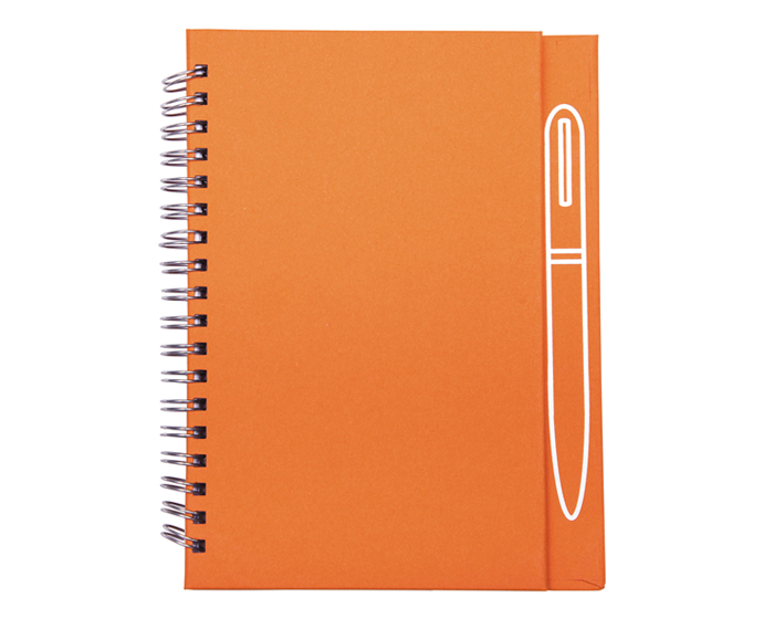Libreta de espiral con 70 hojas rayadas (140 páginas). Cuenta con imán en la parte trasera para sostener un bolígrafo metálico y separador de listón. (No Incluye bolígrafo).