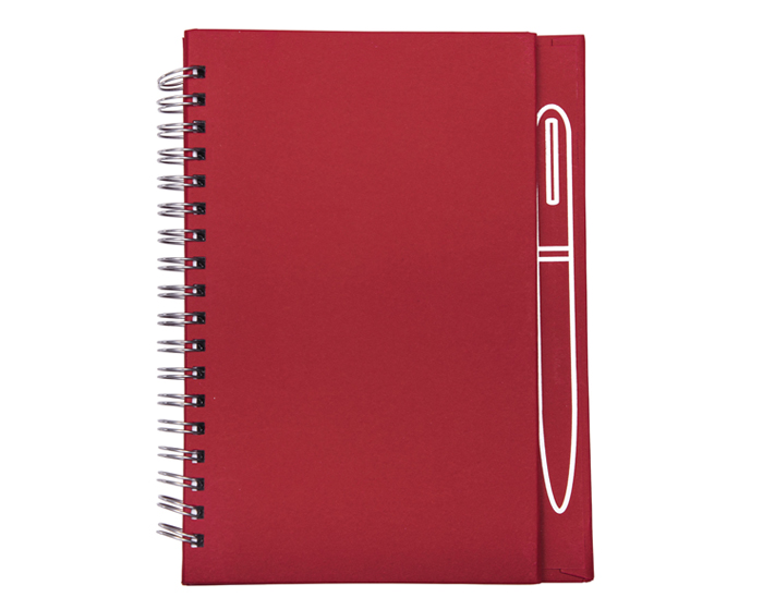 Descripción: Libreta de espiral con 70 hojas rayadas (140 páginas). Cuenta con imán en la parte trasera para sostener un bolígrafo metálico y separador de listón. (No Incluye bolígrafo).