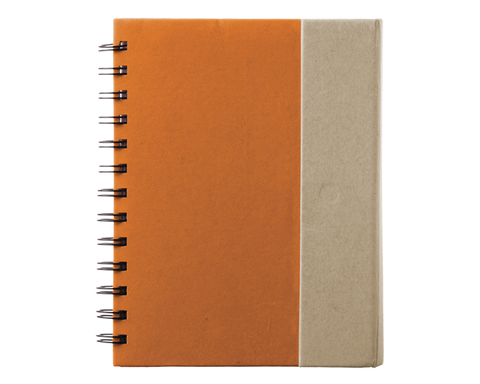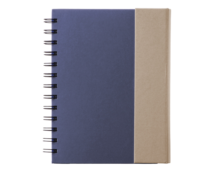 Descripción: Libreta ecológica con espiral metálico, broche magnético y protector de externos. Incluye 5 bandas adhesivas en colores diferentes y blocks de notas rectangulares en 2 tamaños. 70 hojas rayadas (140 páginas) y bolígrafo de papel con sujetador elástico.