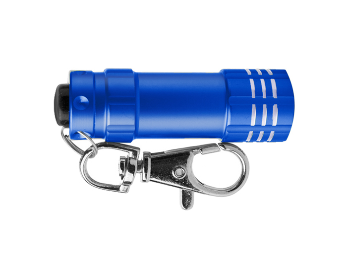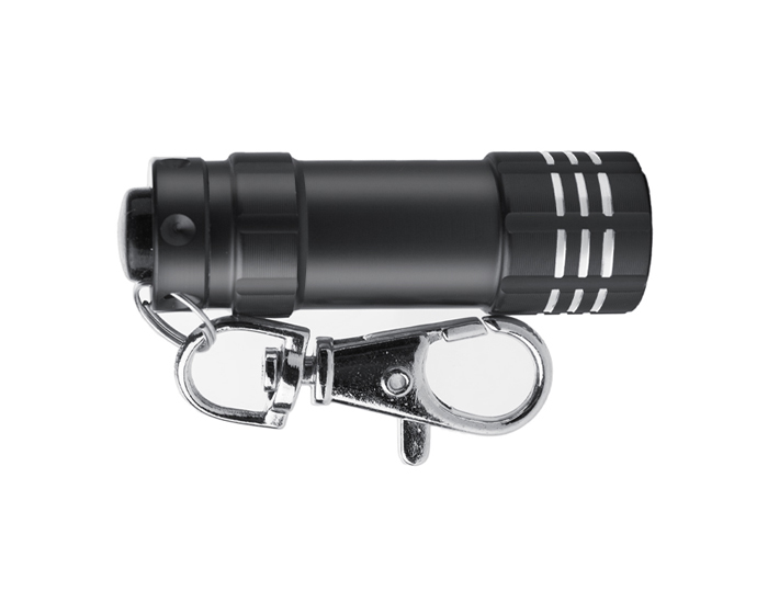 Descripción: Llavero metálico con linterna, luz blanca de 3 LEDS de alta intensidad, botón de encendido con goma de protección. Incluye baterías. Presentación: caja en color negro.