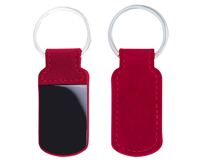 Descripción: Llavero de curpiel con placa metálica para grabado láser y arillo metálico reforzado.