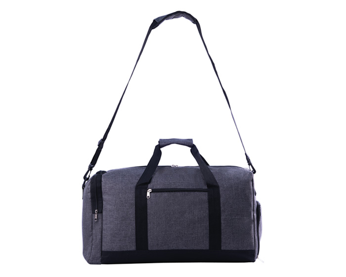 Descripción: Maleta deportiva con 2 compartimentos laterales, uno para guardar tenis y el segundo para objetos personales. Cuenta con bolsa externa con cierre, correa ajustable y asas laterales.