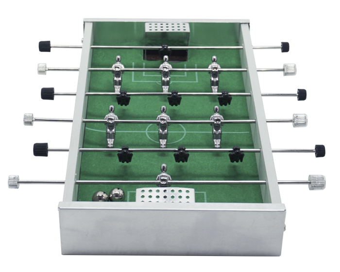 Juego mini futbolito de mesa. Incluye 2 balines de metal. Presentación: caja en color blanco.