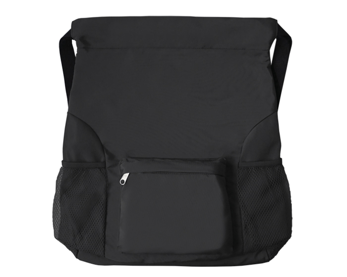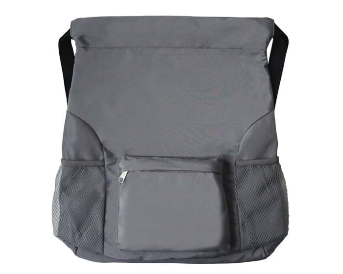 Descripción: Morral tipo backpack semi-impermeable con tirantes ajustables que sirven para cerrar el producto, bolsas laterales de malla e interior con doble forro y división para guardar accesorios. Cuenta con un compartimento frontal con cierre.