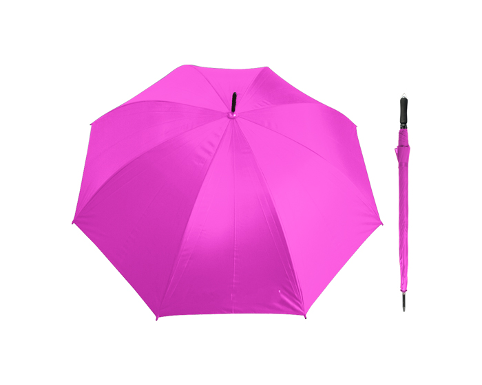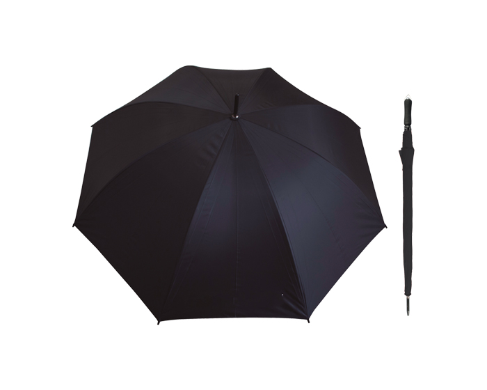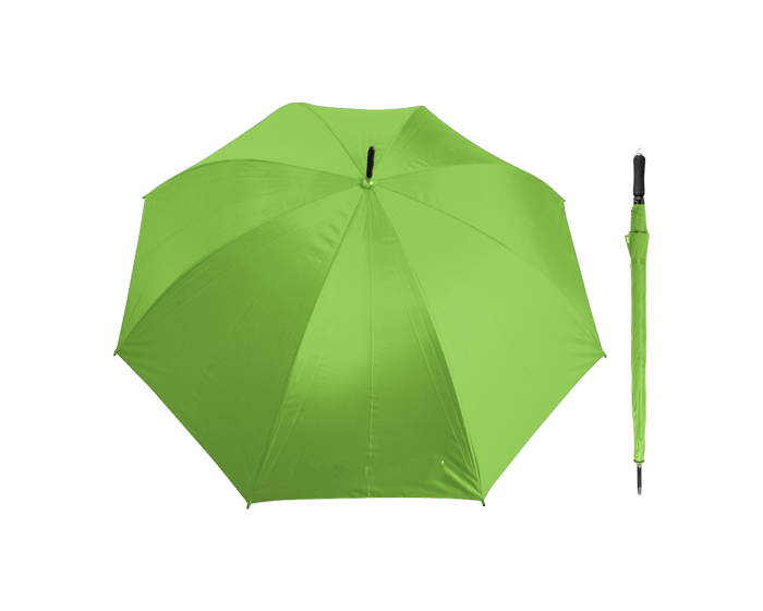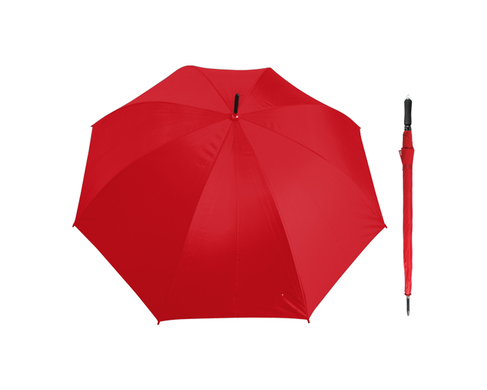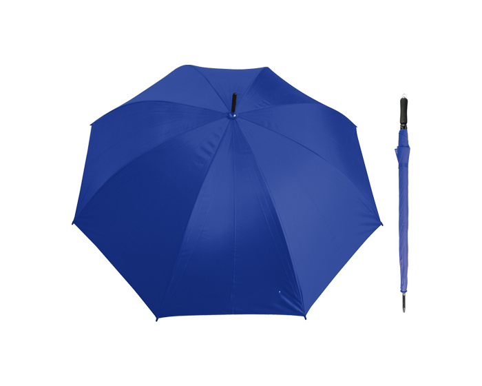Descripción: Paraguas de apertura manual, varillas y eje de metal reforzado, mango de EVA con arillo metálico para colgar. 8 gajos.