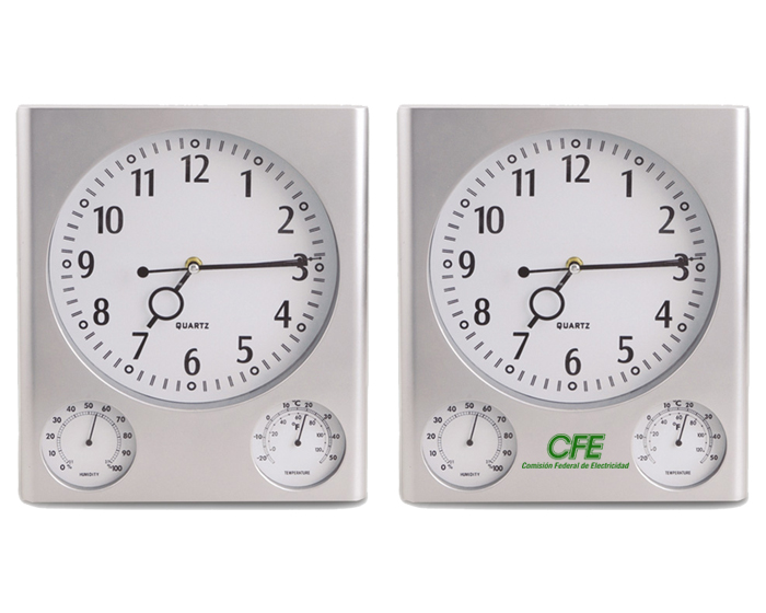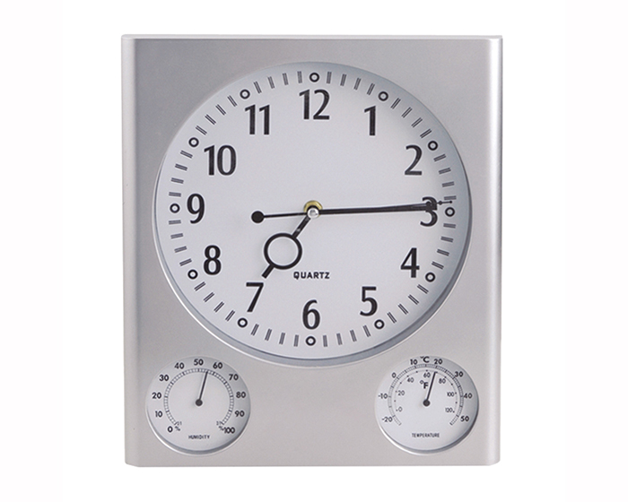 Descripción: Reloj cuadrado de pared, con medidor de humedad y temperatura. Utiliza una batería AAA (no incluida). Presentación: caja en color blanco.