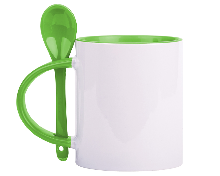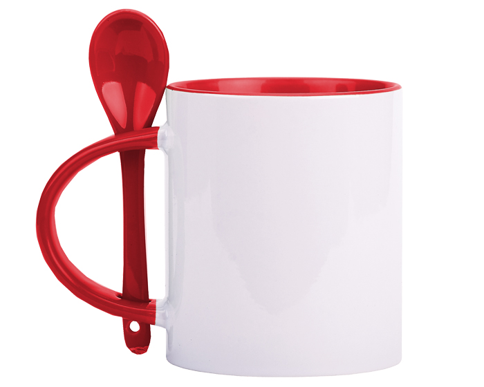 Descripción: Tarro de cerámica con cuchara para sublimación. El asa, cuchara e interior de la taza son de color diferente. CAP. 325 ml. (11 OZ). Presentación: caja en color blanco.