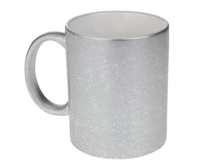 Tarro de sublimación con exterior color plata con glitter para sublimación CAP. 325 ml. (11 OZ). Temperatura y tiempo sugeridos para sublimar: 195 grados / 40 seg. Venta en múltiplos de 12.