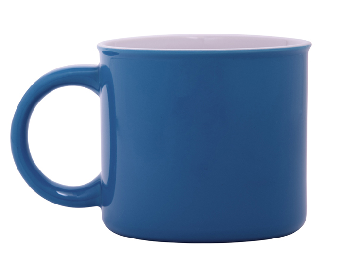Descripción: Taza de cerámica bicolor acabado brillante de boca abierta, interior color blanco. CAP. 15 OZ. Venta en múltiplos de 12.