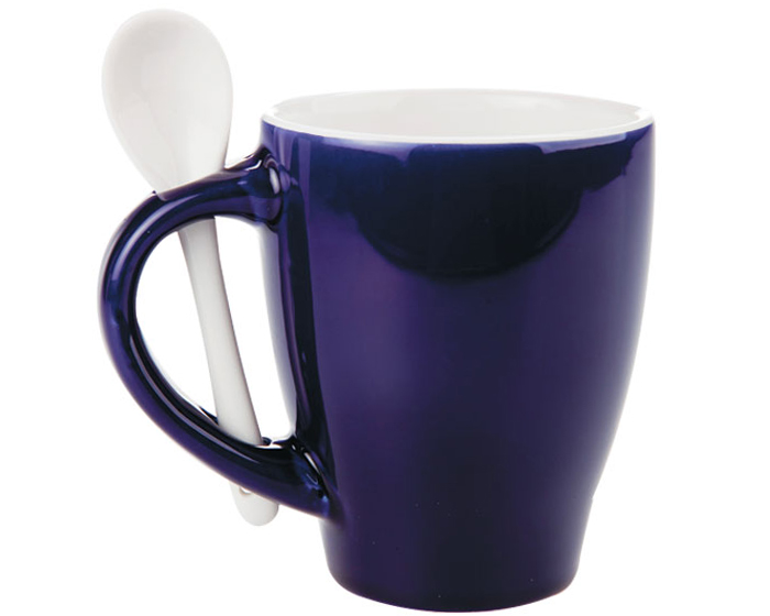 Descripción: Taza bicolor con cuchara. CAP. 12 OZ. Presentación: caja individual.Medidas: Ø 9 x 11 cmMaterial: CerámicaIMPORTANTE: Los precios incluyen IVA. No incluye costo por personalización.