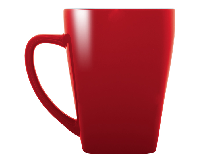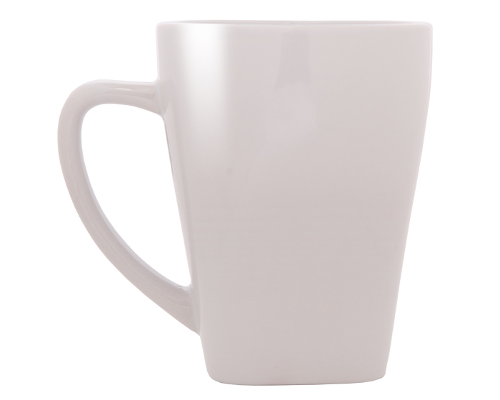 Descripción: Taza con base cuadrada y borde superior redondo, exterior a color semi mate e interior blanco brillante. CAP. 12 OZ. Venta en múltiplos de 12.