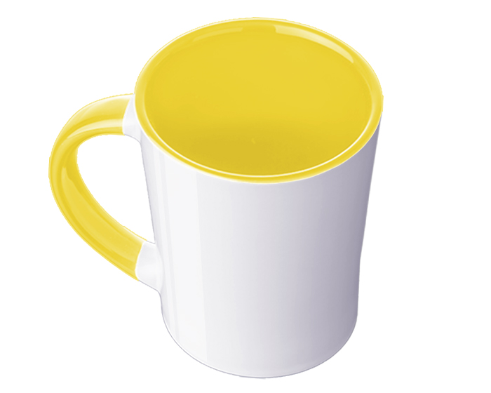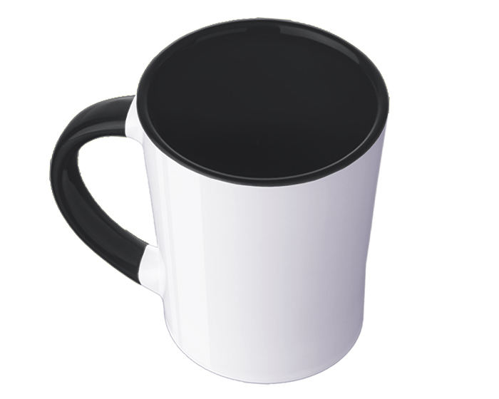 Descripción: Tarro de cerámica bicolor, forma cónica, con asa en combinación, con color interior brillante, acabado liso vitrificado. CAP. 14 OZ. Venta en múltiplos de 12.