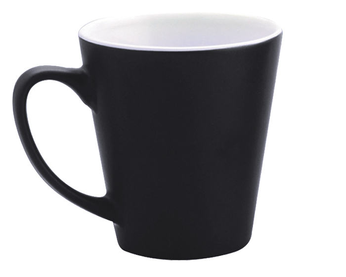 Taza cónica bicolor con exterior mate. CAP. 11 OZ. Venta en múltiplos de 12.