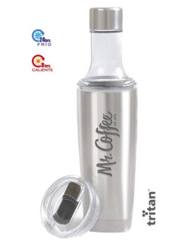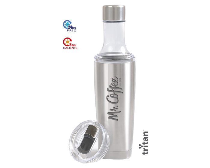Termo de doble pared de acero inoxidable insulado al alto vacío con capa interior de cobre, cuenta con acabado de polvo plástico y asa de plástico. Mantiene bebidas calientes por 12 hrs. y bebidas frías por 24 hrs. In…