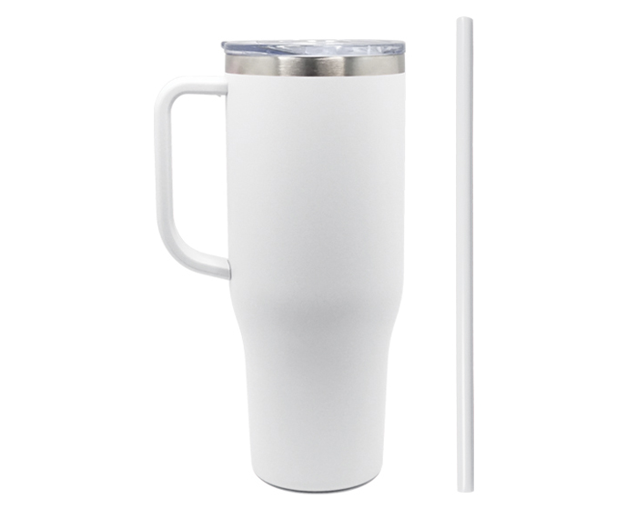 Descripción: Termo de doble pared de acero inoxidable insulado al alto vacío con capa interior de cobre, cuenta con acabado de polvo plástico y asa de plástico. Mantiene bebidas calientes por 12 hrs. y bebidas frías por 24 hrs. Incluye tapa transparente de cierre a presión con seguro deslizable y popote del color del termo. CAP. 1,200 ml. Presentación: caja en color blanco.