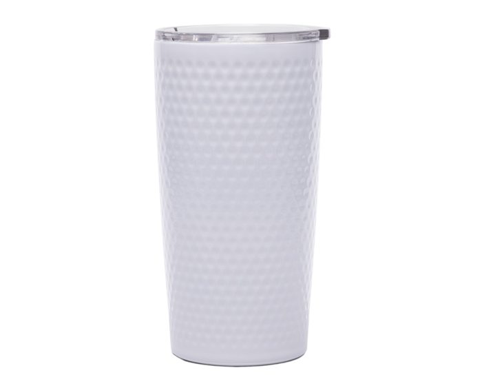 Descripción: Termo de doble pared de acero inoxidable insulado al alto vacío, tiene una sutil textura de pelota de golf; conserva las bebidas calientes por 10 hrs. y frías por 20 hrs. Cuenta con tapa a presión transparente con seguro deslizable. CAP. 590 ml. Presentación: caja en color blanco.