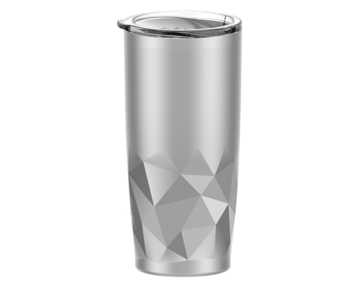 Termo de doble pared de acero inoxidable insulado al alto vacío, mantiene las bebidas frías por 24 hrs. y calientes por 12 hrs. Exterior con diseño geométrico. Incluye tapa a presión transparente con seguro deslizable…