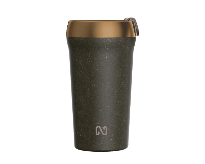 Descripción: Termo NAYAD NEO de 14 Oz. de doble pared, la interna es de acero inoxidable y externa de granos de café reciclado. Mantiene bebidas calientes por 3 hrs. y bebidas frías 5 hrs. En la parte superior tiene un cintillo metálico color bronce. Cuenta con tapa a presión con seguro giratorio, previendo salpicaduras. CAP. 414 ml. (14 OZ). Presentación: Caja de color. *Libre de BPA.