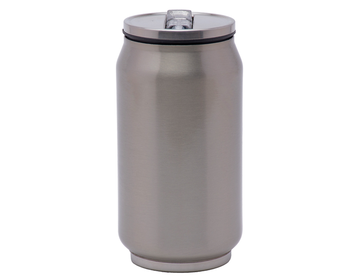 Descripción: Termo para sublimación en forma de lata, es de acero inoxidable con doble pared insulado al alto vacío, mantiene las bebidas calientes por 12 horas y frías por 24 horas. Cuenta con tapa hermética de rosca y boquilla plegable para beber. CAP. 300 ml. (10 OZ). Presentación: caja individual.