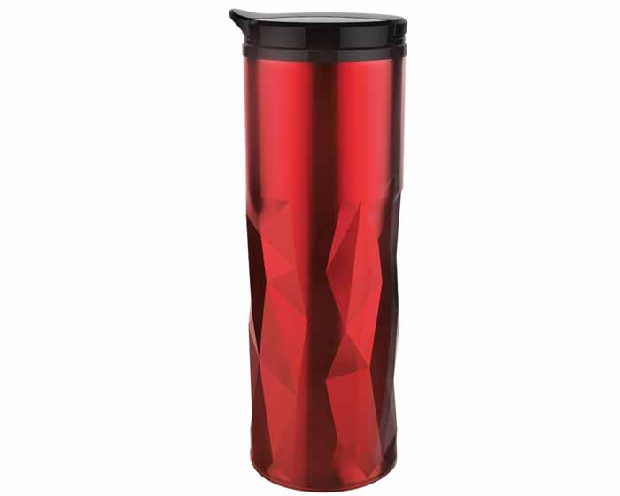 Descripción: Termo metálico con interior plástico, tapa de rosca hermética, boquilla y tapa abatible con seguro. CAP. 500 ml. Presentación: caja en color blanco.