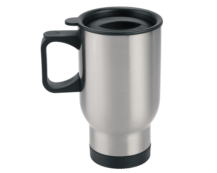Descripción: Termo de viaje de acero inoxidable para sublimar, ideal para colorase en el portavaso del auto; cuenta con asa y tapa de plástico con cierre a presión. CAP. 450 ml. (15 OZ). Presentación: caja individual.