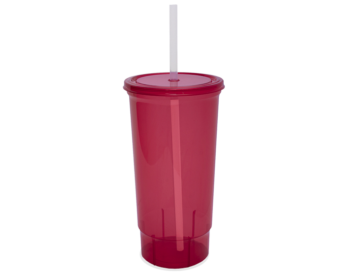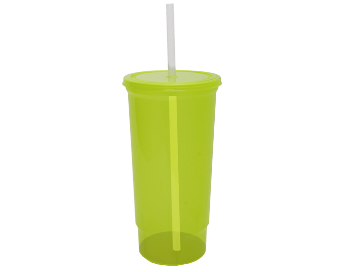 Descripción: Vaso de plástico con tapa a presión y popote. Variedad de colores. Para llevar en el auto. CAP. 930 ml. * BPA FREE.