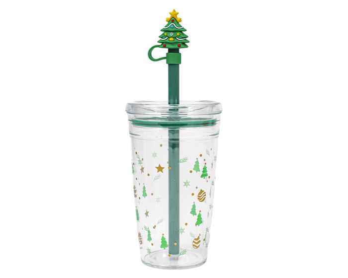 Descripción: Vaso coleccionable de plástico transparente con motivos de Navidad, cuenta con tapa a presión anti derrames, sellos de silicón y popote verde con protector de popote en forma de Árbol Navideño. Es ideal para bebidas frías. CAP. 450ml. Presentación: Caja kraft.