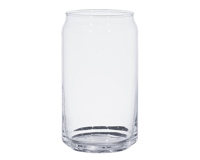 Descripción: Vaso de vidrio con forma de lata. CAP. 470 ml.